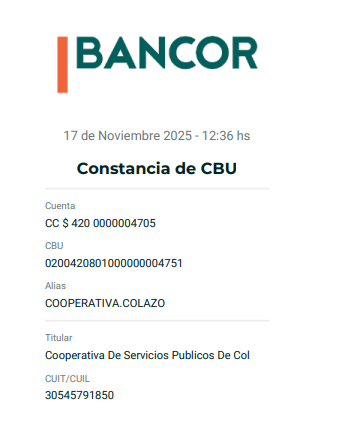 COOPERATIVA DE SERVICIOS PUBLICOS DE COLAZO LIMITADA
